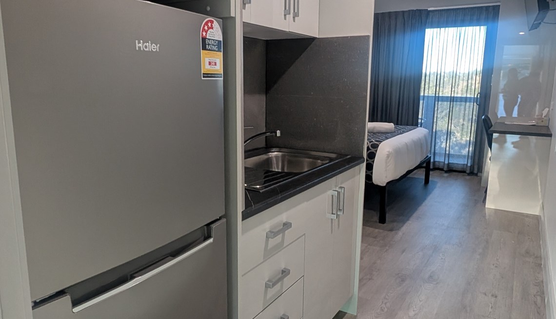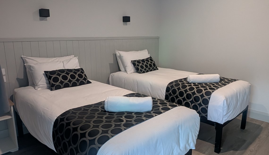 Our King Room with 2 Kings offers a modern option for guests wanting a little more comfort and space while traveling with a couple more people. These rooms feature everything you would expect for your stay including a modern ensuite bathroom, a second toilet, two large smart TV, separate sleeping areas, kitchenette, executive beds, a bench, two air conditioners and heating. Some of these rooms feature a balcony with seating and all of them feature additional seating in front of their room.